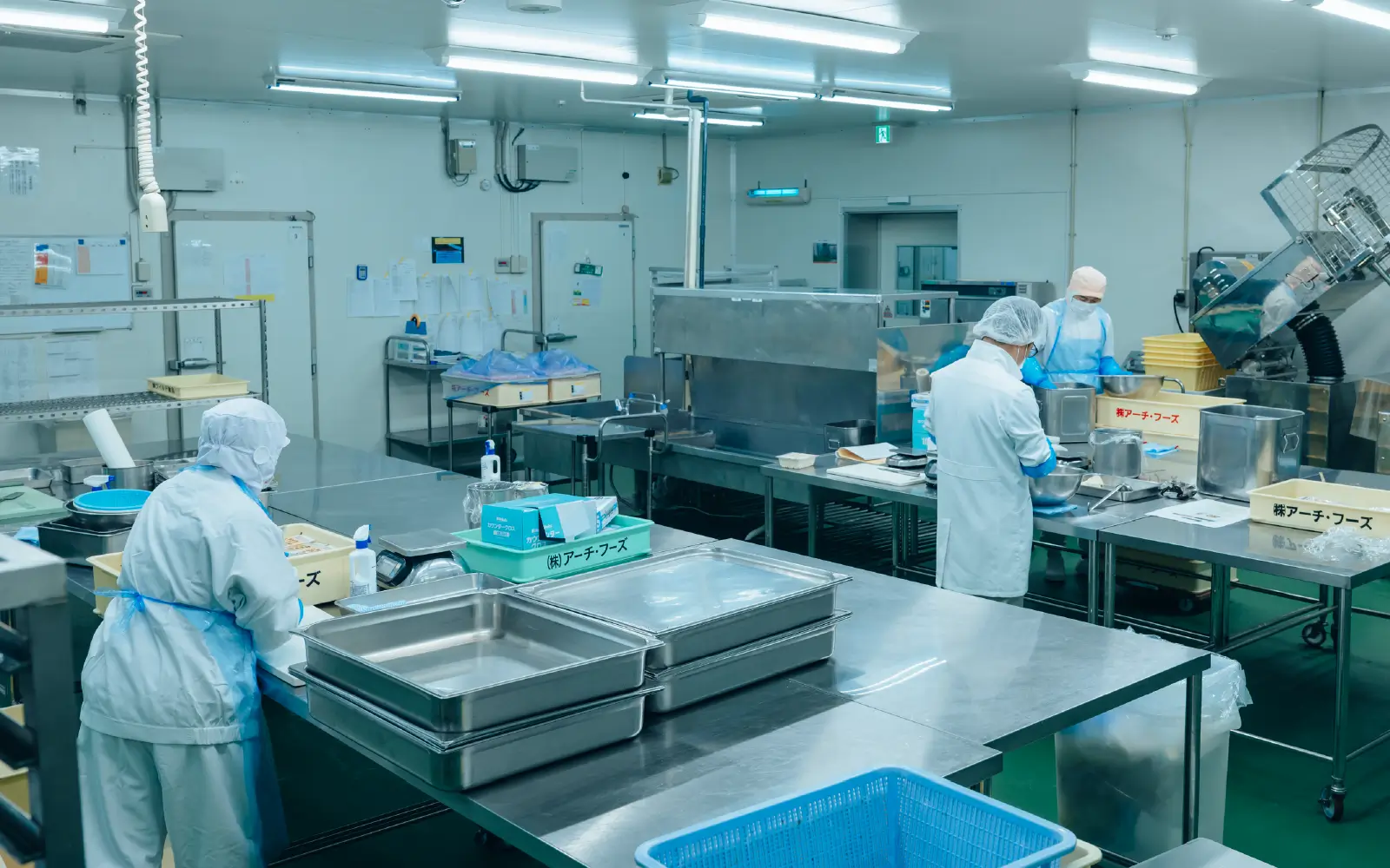 食品は生き物。目に見えないウィルスを排除する為、弊社では衛生部を配置し食品に関連するすべての法規を遵守します。 製品の安全性確保のため、計画・実行・チェックの機能が有効に働く体制・運用方法を絶えず追求しております。 衛生部を配置し、賞味期限の管理や、日配品はロット検査及び保存検査も重要で日々製品の検査の実施、また従業員も最善の注意を払って業務に努めております。